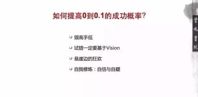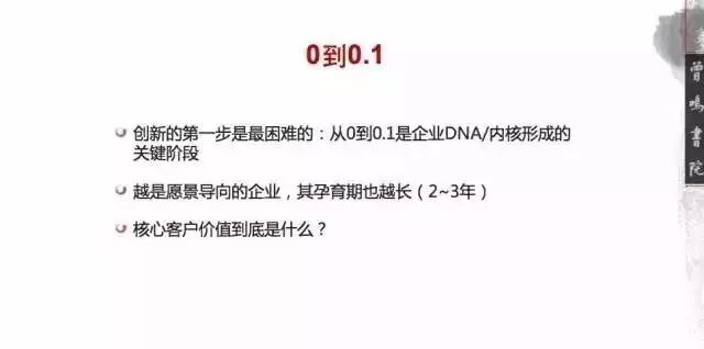 我想特别提出一个概念:0-0.1,这是很多企业很难通过的一关。