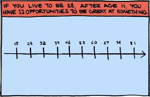 上帝多次赋予我们梦想的天资,去点亮不曾确信的世界。如果你能活到88岁,在11岁之后,你将有11次机会成为某个领域的专家。