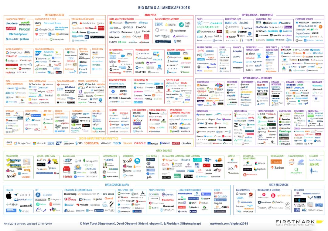 2018 大数据和 AI 全景(来源:http://mattturck.com/bigdata2018/)