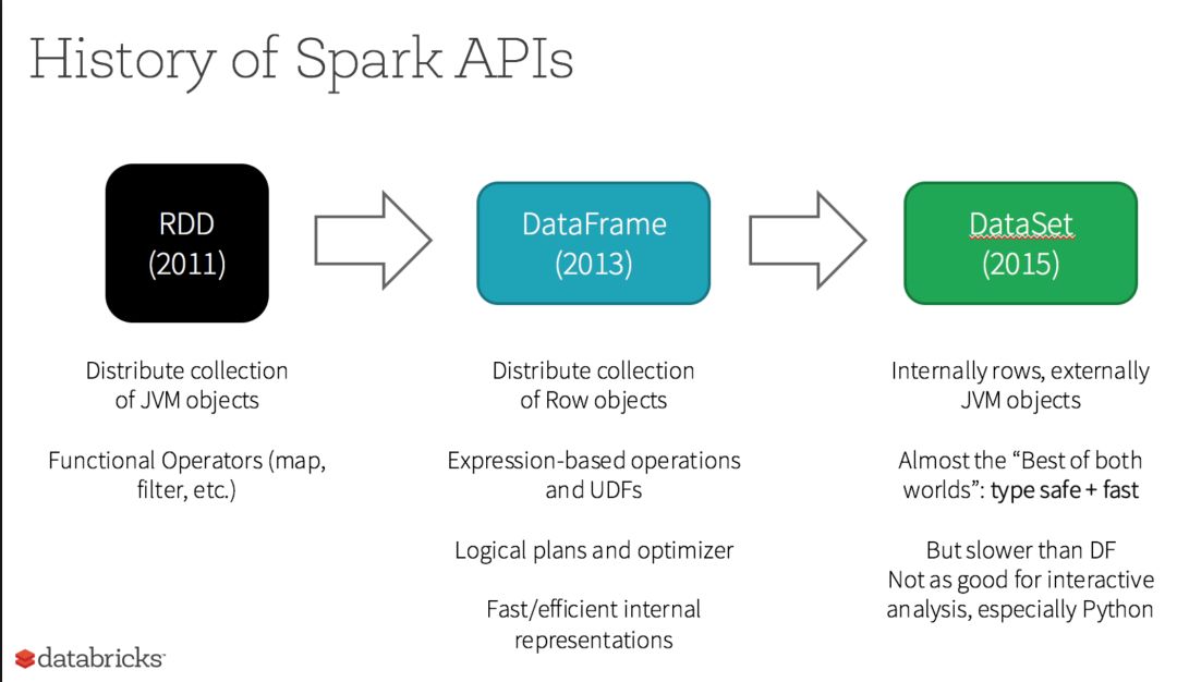 Spark 2.0 API (来源:https://databricks.com/blog/2016/07/14/a-tale-of-three-apache-spark-apis-rdds-dataframes-and-datasets.html)