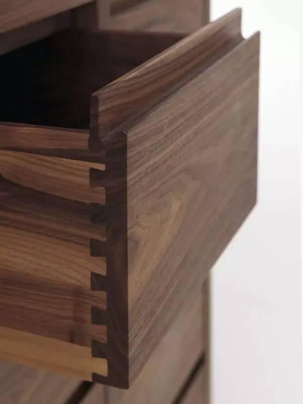 半透燕尾榫多用在抽屉面板与屉身的接合,可以保持正面的一致性。