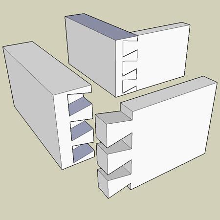 燕尾榫是最常用的细木工接合方式,因为其拥有十分可靠的抗拉强度。它是由一系列的梯形尾巴阴阳相接组成,一旦组合不需要其它另外的固件就相会当牢固。