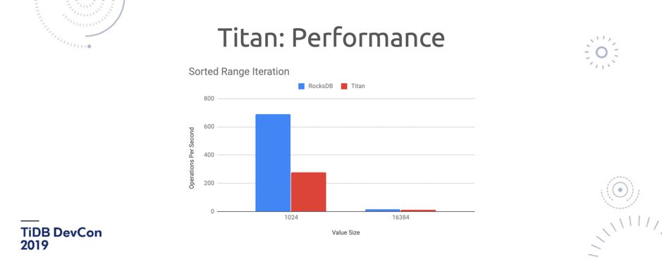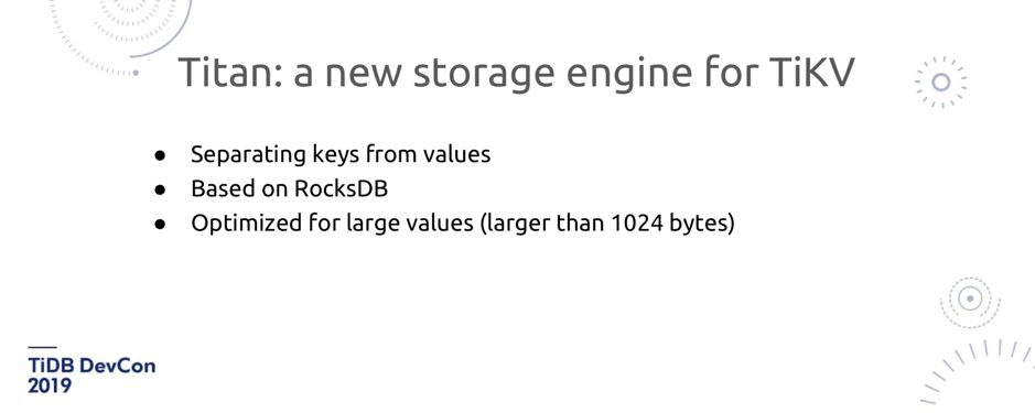 当然这个 Performance 的提升,里面有很大一部分是我们一个新的 Storage 的贡献。新的 Storage 叫 Titan。我们也是非常有意思的和美图基于 TiKV 开发的一个 Redis 的实现,使用了一样的名字。大家对于这个希腊神话的热爱,其实是一样的。程序员在选名字的时候,也都有自己的特点,所以大家就重名了,重名之后,我们还讨论了一下,觉得这个名字要不要考虑改一下,后来大家觉得既然都挺喜欢,要不然都用这个吧,我们觉得这也挺好。