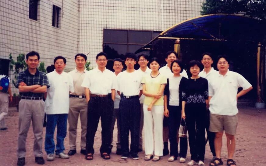 百度最早的一批员工在最初的办公场地“北大资源宾馆”前合影。(左四为李彦宏)
