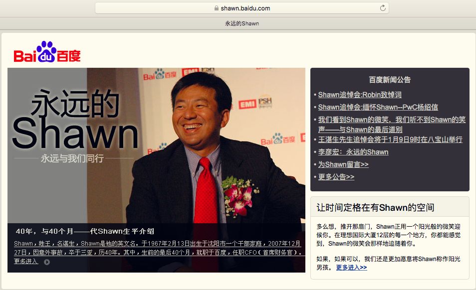 王湛生没能帮百度迎来这一天,更没能预料百度未来的艰难。2008年春天,在三亚休假时,他因为溺水永远离开了这个世界。